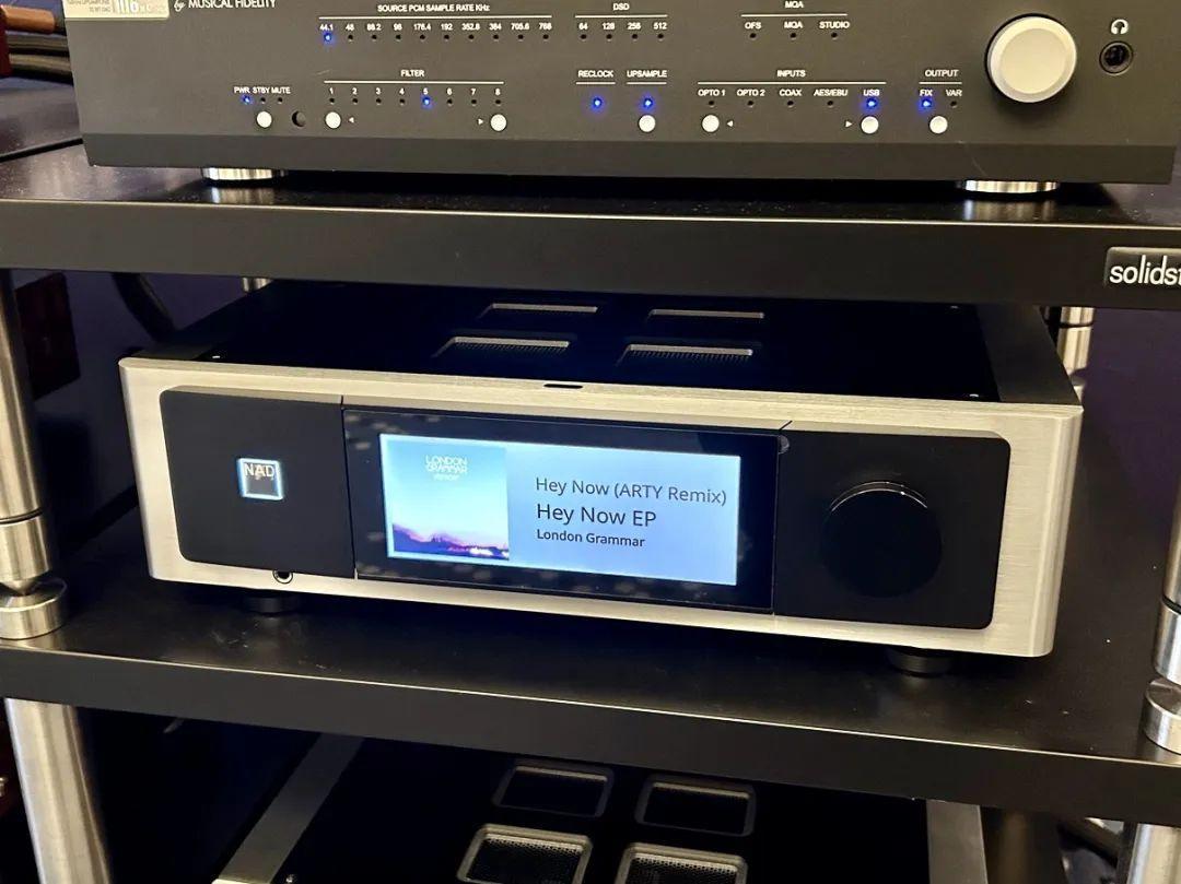 本次展会,影音大师带来了NAD品牌的最新力作Master系列前级功放M66。这是一款革命性的高保真功放,将发烧级DAC与高分辨率的多房间音乐流媒体相结合。