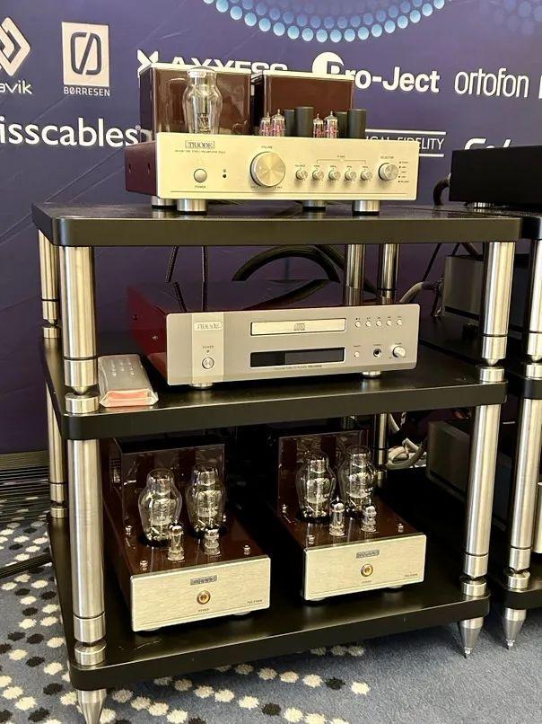 现场还演示了新代理的日本TRIODE电子管音响产品,包括TRX-3电子管前级、TRX-P300M单端单声道后级和TRV-CD6SE电子管CD播放器。