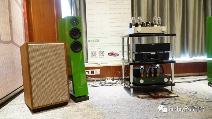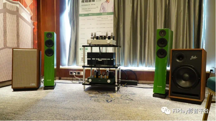 现场演示的整套器材钧采用来自波兰的音响品牌,分别是Pylon Jade 20 和 Pylon Jasper 23两对座地式音箱,音响架摆放的功放是Fezz Lybra 300B电子管功放、5050电子管功放、Miara Ceti 2A3电子管功放。