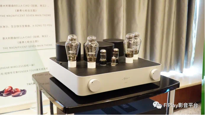 與之搭配的Fezz品牌同樣來自波蘭,據現場工作人員介紹,Fezz的外觀是邀請到當地知名的設計團隊KABO&PYDO,以確保功放本身能成為家居裝飾中獨具品味的一員。Miara Ceti 2A3是款小功率推挽式輸出的甲類電子管功放,使用2A3膽管,輸出功率3W/每聲道,適合作為桌面系統或者驅動高靈敏度號角音箱(如Pylon Jade20)來使用。