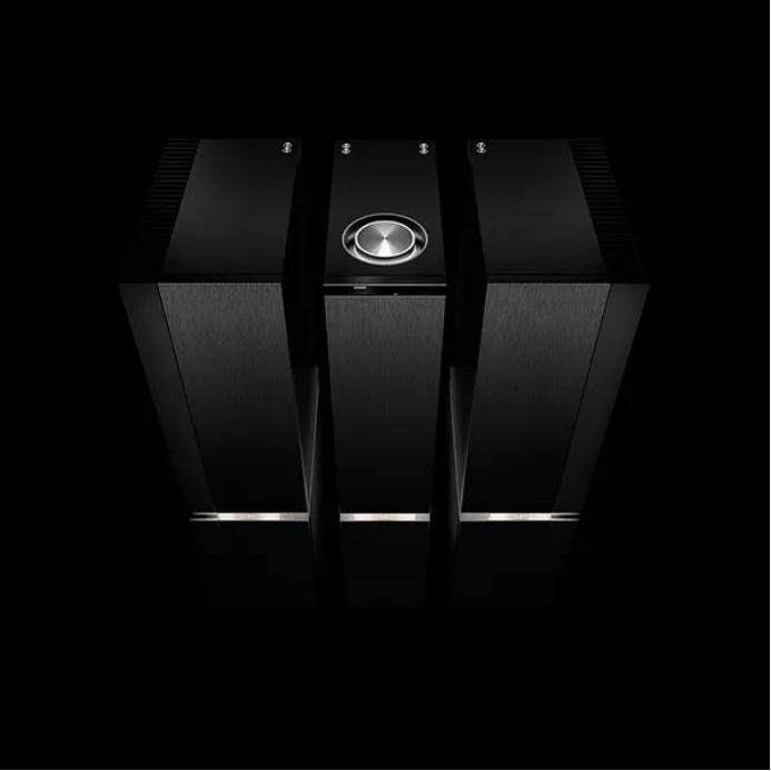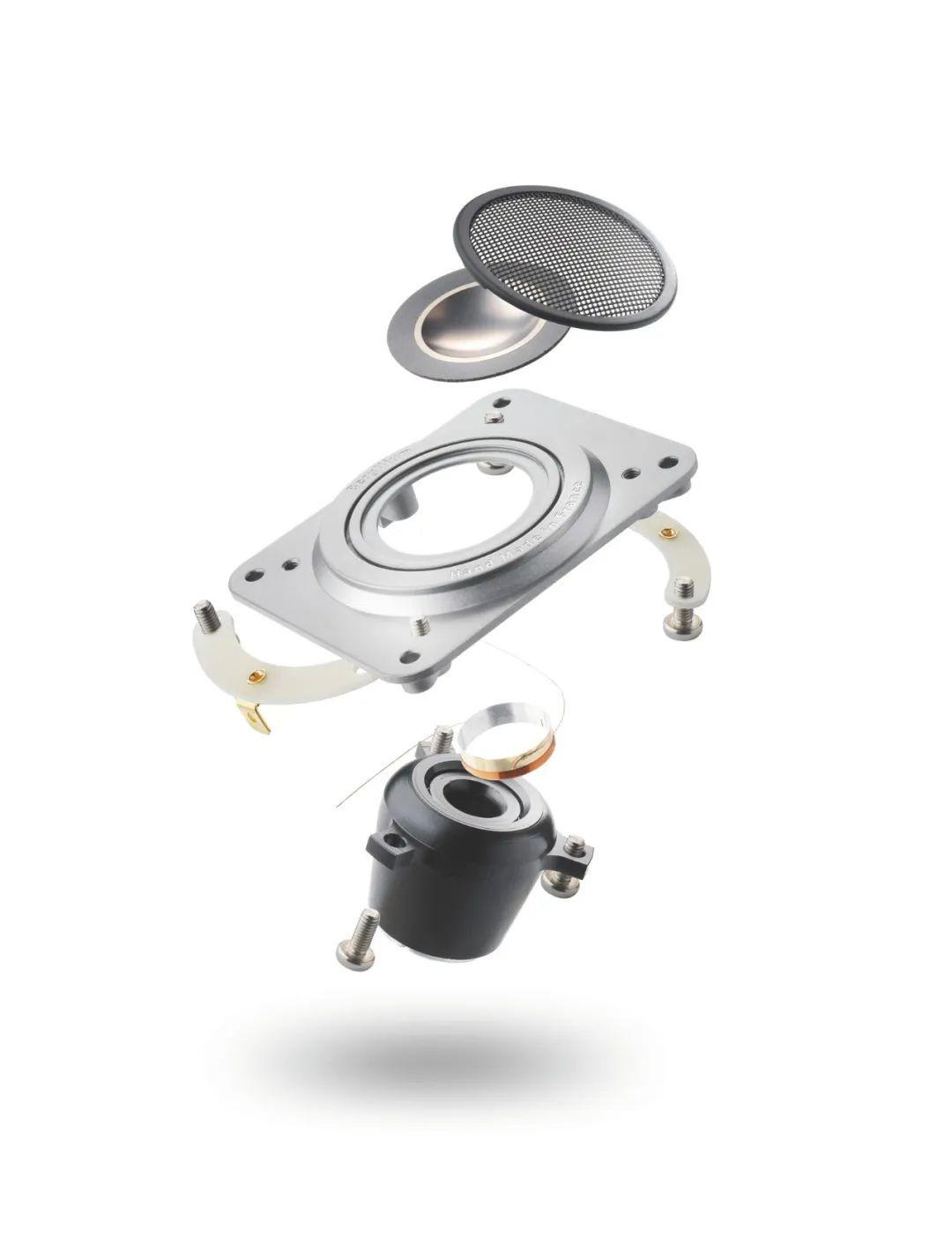 這其中就包括了幾項重大的創新技術:1、以發泡材質和玻璃纖維貼壓複合而成的「W」型三文治錐盆,實現了盆面高剛性、超輕量、低失真的中低頻質感;2、採用了凹型純鈹高音單元,其物理特性相比起鈦材質輕了2.5倍、硬度高3倍,聲音傳播速度快了3倍,可以精準再現頻率在5倍頻程以上,高頻可平滑上展到40kHz;3、以聚焦環技術創新性地採用了釤鈷稀土磁鐵,有效地防止了任何退磁風險;4、以多鐵氧體磁鐵、梅花形磁路結構,最大限度降低磁漏,減少失真;5、結合的高強度伽瑪箱體結構,以及優化相位分頻技術,保證了真實、自然、一致的聲音重播。