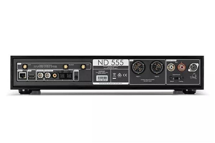 它有2組光纖、1組同軸、1組BNC輸入,2組USB(type A),可以播放外接儲存裝置里的音樂檔案。最重要的當然是連網功能,它有一個RJ45的端子,可提供有線網絡連接,並可支持Wi-Fi無線傳輸,意思是您連網線都可以不用接了。串流部分應用了Naim最新開發的網絡卡,噪聲低、高速LVDS、可提供高速傳輸,支持最高解析率達PCM 32bit/384KHz、DSD 128,內有高精度的主時鐘校正時間,以降低時基誤差。ND555更有SHARC DSP芯片,可以將訊號升頻到40bit的位深度。音控則採用Burr Brown的PCM 1704內建的音量控制,採用真正R2R階梯架構的音量控制。