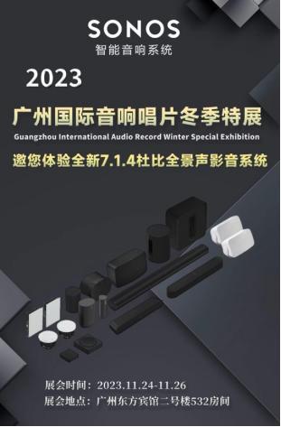 2023廣州國際音響唱片冬季特展將於11月24日-11月26日在廣州東方賓館舉行,Sonos將攜革命性全新設計的Era 300系列產品參展,讓更多發燒友體驗到全新空間音頻的魅力。在展會上將一併展出Sonos全系產品,包括備受好評的Sonos家庭影院系列、音樂系列等產品的魅力,以及Sonos的開放API在智能時代的協作潛力及應用價值,面向商業用戶打造全新的聲音解決方案。