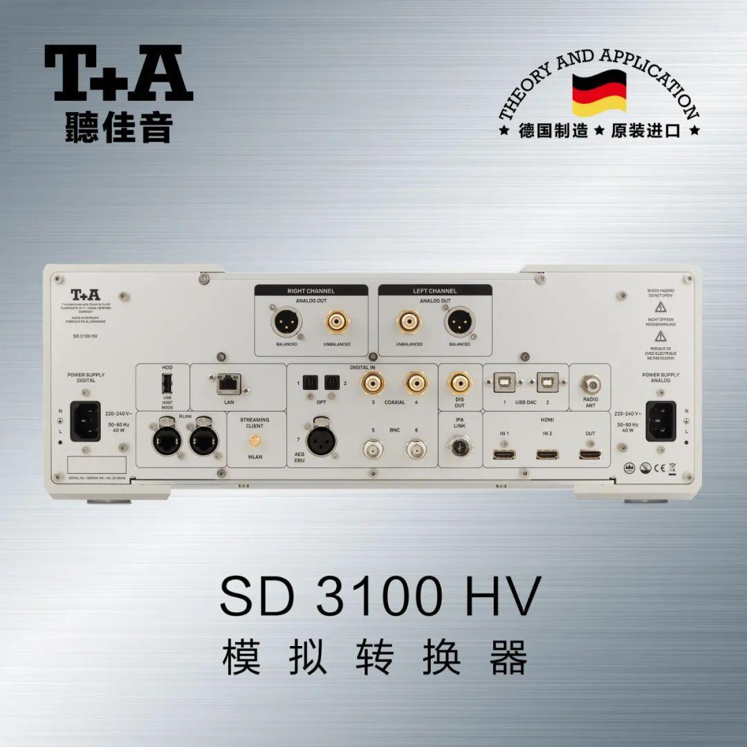 SD 3100 HV Reference維持着HV系列的傳統外觀,非常堅固的機身結構,以五塊厚實的鋁合金板構成金屬框架,將所有電路部分藏於其中,可妥善屏蔽抵擋外在的電磁波,並提供低諧振的機身結構。超大顯示面板有清楚簡明的字樣提示,使用者能清楚得知當前機器的工作狀態。飛梭式多維操控旋鈕讓您非常容易上手,除了使用紅外遙控器以外,還可使用專屬App通過移動終端來進行控制。面板上的按鍵採用觸控式設計,外加兩個耳機輸出端口,一個為6.3mm的單端輸出,一個是4.4mm的平衡輸出,這兩組耳機輸出采A類放大,聲音品質等同於一部旗艦級的耳機放大器。