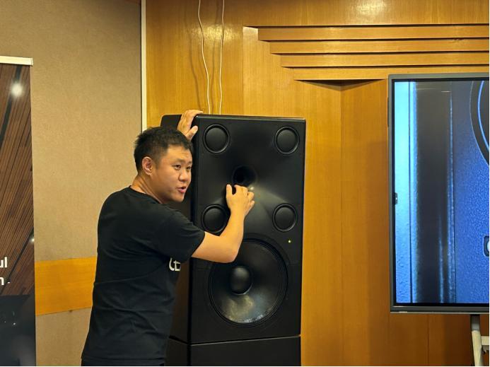 結合本次發佈的新品 8381A,他圍繞點聲源設計、智能主動分頻、指向性控制、音箱尤其是低頻與房間耦合的自適應技術等,與在場來賓分享了真力 45 年的變與不變。