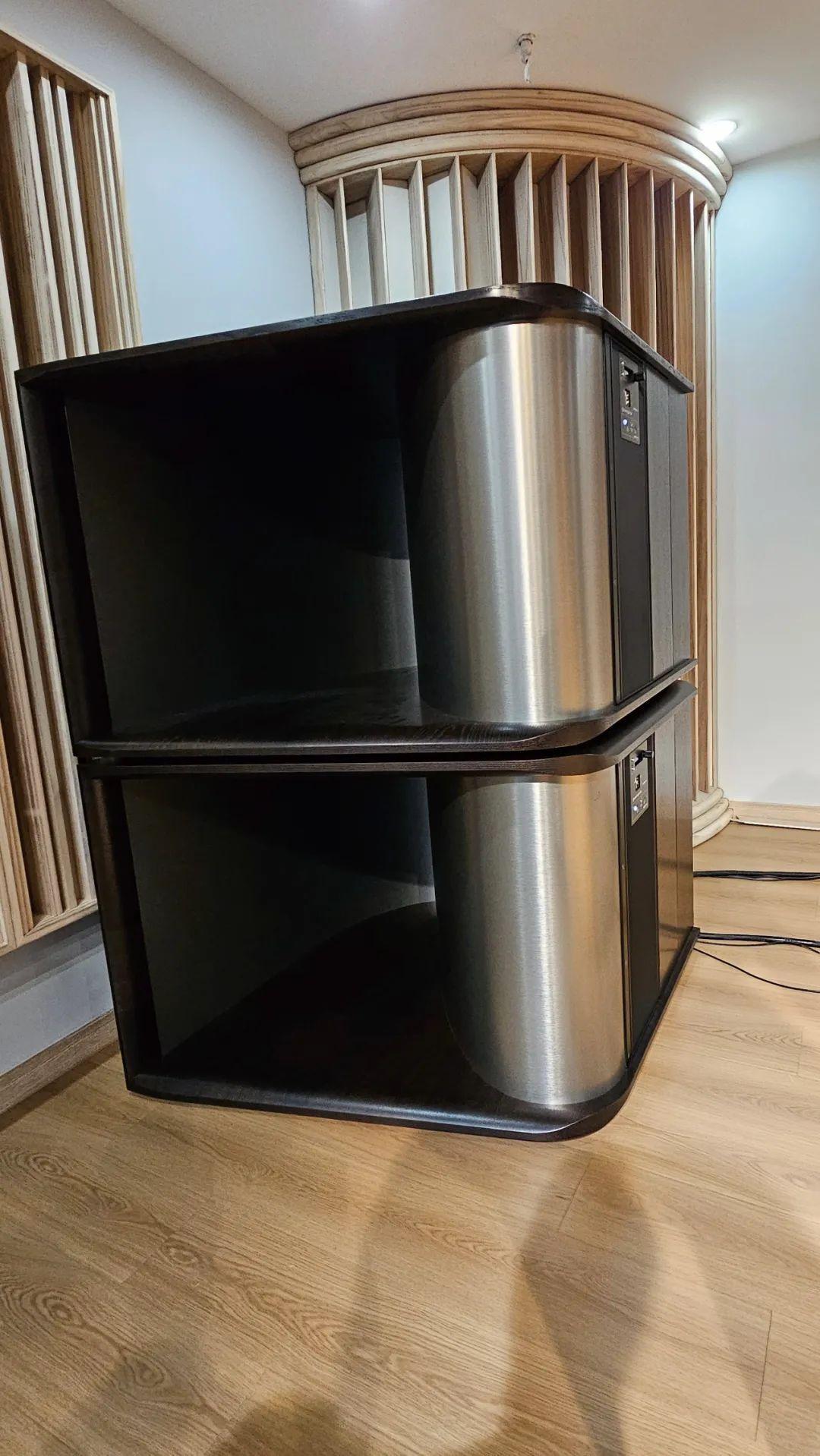 Discovery 3Zero的框架结构和三脚架立柱由钢和铝制成。在箱体内部,13mm厚的垂直钢质支架确保了额外的稳定性。这并不新鲜,但从共振控制的角度来看至关重要。Discovery 3Zero搭载由全新TACTIC 3.0单元组成的ISOBARIC等压驱动单元。将斐波那契丝膜碳纤维复合高音单元直接置于低音和中音单元的的声学中心。由于所有单元都放置在彼此相距几英寸的范围内,Discovery 3Zero频段的相位响应是无与伦比的。Discovery 3Zero有着快速、有力、精准的声音表现。这些TACTIC 3.0单元是对以前使用的版本的进一步开发,它们的振膜由等规聚丙烯制成,具有高阻尼的特点。两个低音单元沿用经典的等压推挽设计。在Discovery和Endeavor的设计中,较低的单元与箱体底部齐平,将驱动头暴露在箱体外部。选择这种非常规的放置方式是为了配合较小的箱体。从设计的角度来看,外露的低音单元无疑是引人注目的。