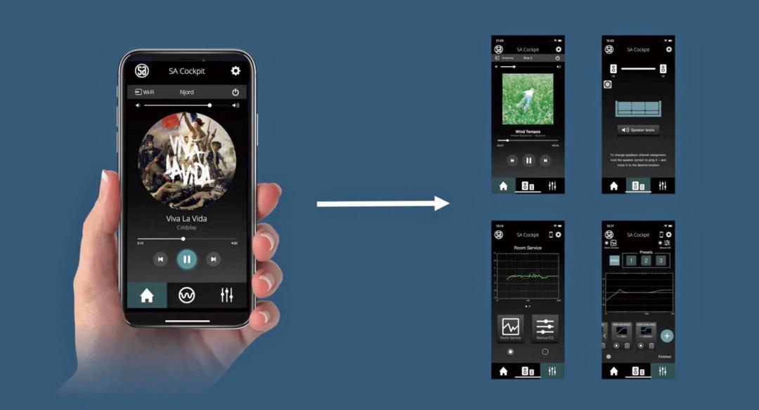 別以為無線音箱就無法享受極致的音樂,為解決聲學問題,System Audio特地推出免費的房間校正應用程序:RAM TWEAKS(房間聲學優化軟件),搭配SA Cockpit App,可輕鬆實現自動調音,升級音樂體驗,或通過DSP調整處自己喜歡的聲音風格,隨時隨地打造時尚簡約的客廳影院/Hi-Fi系統。
