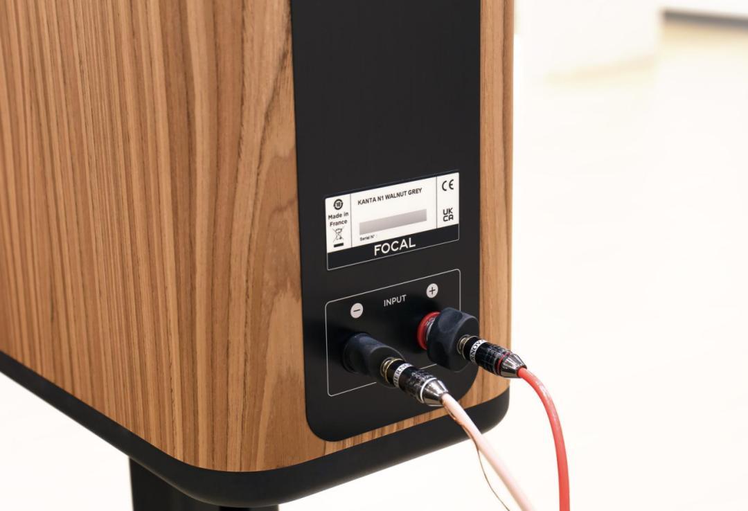 Kanta N°1箱体由多层物料加压而成,拥有非常优异的声音中性。而前障板采用全新的HDP(高密度聚合物)制作而成,具备极强的惰性特质,比MDF的密度高70%,硬度高出15%而且阻尼高出25%,整块的前障板消除了声音衍射,能更好增强声音的清晰度。箱体背面靠上位置有大号倒相孔,保证声音拥有自然、真实和无动态压缩的特点。值得一提的是,Kanta N°1配备原装的“四爪”金属脚架,价格虽然并不便宜,但属于原配设计。