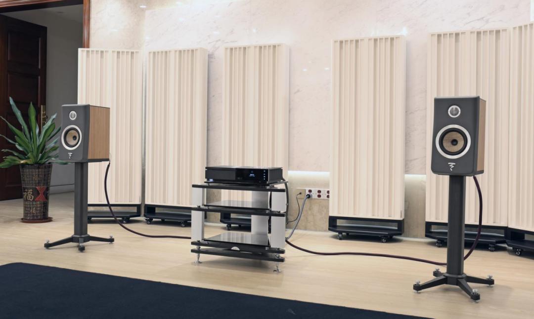 单元方面,Kanta N°1书架式音箱的高音单元为全新一代27mm IAL3纯铍凹型高音单元,事实上旗舰乌托邦系列高音振膜也采用纯铍材质,可见作为“老三”的Kanta N°1在用料方面也是绝不妥协,高音单元以IAL3技术加持,该技术是IAL(无限声音载荷)和IHL(无限号筒载荷)技术的结合,能有助于吸收声波,降低高音单元的频率。而6.5英寸中低音单元则为FOCAL知名的亚麻锥盆,其应用了FOCAL两个专利技术,第一是TMD(谐振质量阻尼器)技术,其根据共振让单元冲程运动时变得稳定,在不影响动态的情况下避免锥盆变形;第二是NIC(中性电感电路),以确保音圈于磁隙中运行时,全程之磁场密度一致,消除电涡流现象干扰。总体结果是拥有清晰的低音、更加中性和准确的中音表现。为保证Kanta N°1的声音品质,厂方建议其在25平方米内使用。