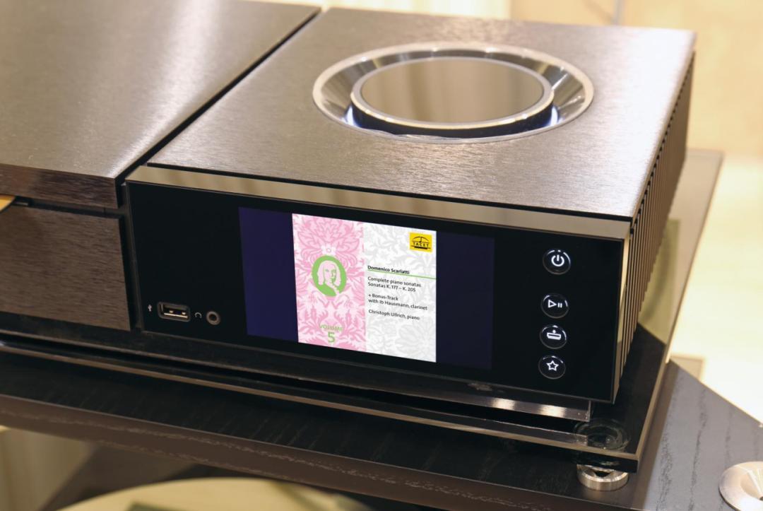 首先我通过USB接口播放SSD移动硬盘,虽然厂方说明支持的上限容量为1T,但我们实际使用的2T移动硬盘都能正常读取播放。播放由Christoph Ullrich演奏Domenico Scarlatti的钢琴奏鸣曲全集,虽然Uniti Star每声道功率只有70W,但在驱动KANTA N°1时,录音中的那种纤细,反应快速和华丽感得到全面的呈现,如“水银一般流淌”。钢琴的质感和流畅性得到很好的体验,分析力充足,中高频没有干薄感和数码味,音质迷人靓丽和晶莹剔透,给现场听众轻松营造活跃舒适的古典聆听氛围。KANTA N°1书架式音箱的铍高音单元更是将钢琴演奏中,包含的泛音与余韵充分地再现了出来,钢琴琴身自然的共鸣音与空间中的残响显得格外真切。