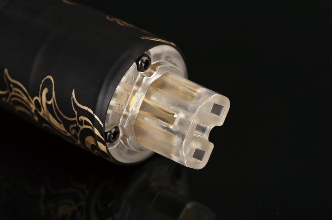 本次介绍的Unique旗舰版电源线共有三款版本,包括金头旗舰版、白金头旗舰版和蓝星头旗舰版。三款旗舰版电源线的线身均为一致,导体均为采用独门专利构造的铜/银合金,且电源插头也为美国Wattgate制品。而区别之处在于电源插头的金属触片经过不同的加工改造,白金头和黄金头插头的金属触片具备与它们名字对应的黄金和白金成份。而蓝星头旗舰版电源线则采用Wattgate蓝星插头,适合应用在低电力需求的信源设备和前级放大器上。