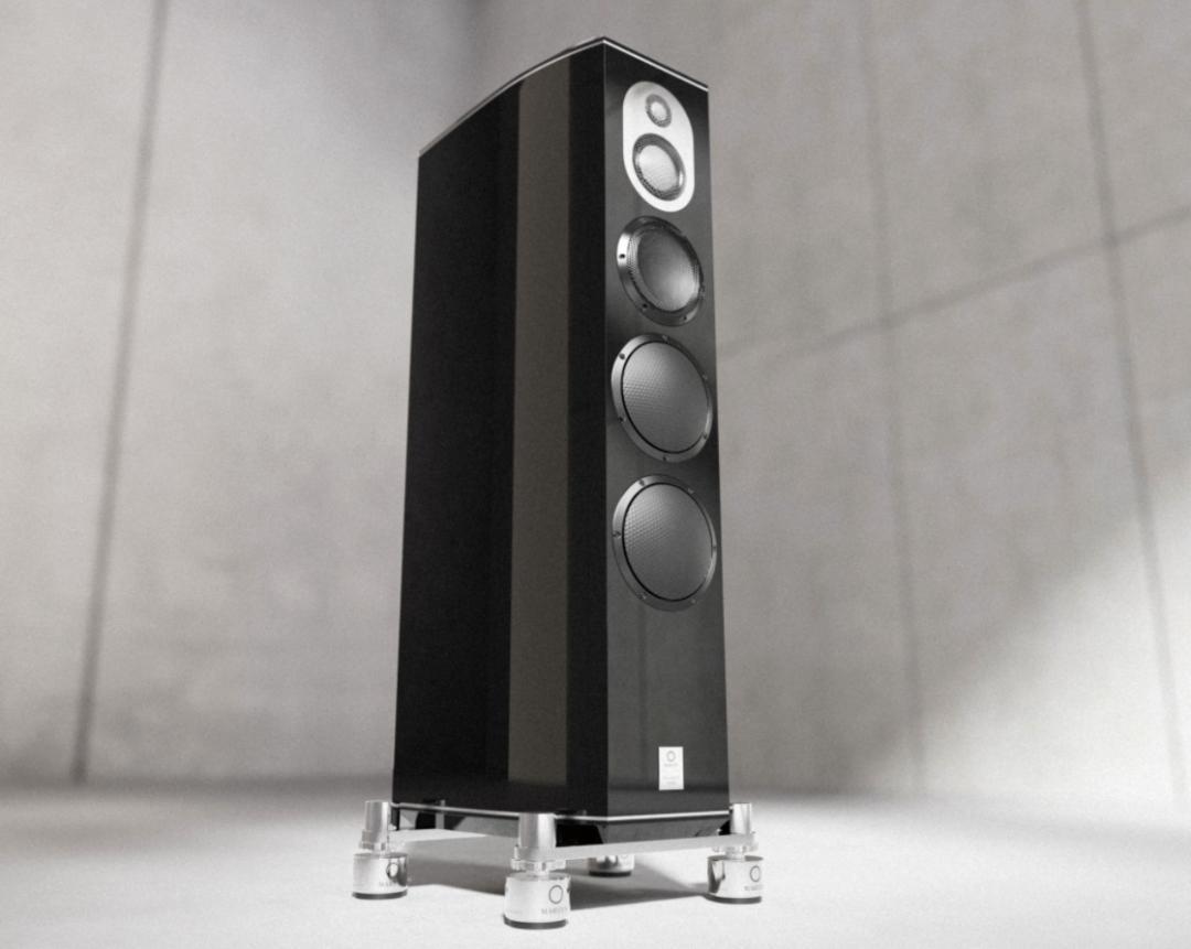 中間則是1隻直徑7英寸純陶瓷振膜中低音單元,負責200-800Hz中低頻段。這隻單元採用了陶瓷材料,堅硬、輕、極其堅硬,有着非常高的內部阻尼係數,有助於最大限度減少失真,並提供了絕佳的清晰度。2隻直徑8英寸三明治蜂巢結構鋁質振膜低音單元則是負責45-200Hz頻段,這兩隻單元是向Accuton品牌定製,振膜由三明治蜂巢結構鋁材製成,失真極低,長衝程設計,能夠提供極具動態的低音表現。背板上的2隻直徑8英寸被動式三明治結構鋁質振膜單元,與前面板上的低音單元設計類似,不過可以將低頻下限進一步擴展到驚人的23-45Hz,已經直逼人耳聽音的理論極限值。此外,在分頻器上,Septet座地式音箱採用了Marten品牌慣用的一階分頻,分頻點設為200Hz、800Hz、6000Hz,分頻器採用Jorma內部布線、銅箔空心線圈、銀/金電容器和定製電阻,在相位控制和失真抑制上下了不少功夫。