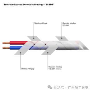 專利技術SASDB®全稱為Semi-Air-Spaced Dielectric Binding半空氣間隔絕緣粘合膠帶,是一種4層雙向X-Cross PTFE膠帶疊加工藝,其中3個相對內層的每個後續繞組都設置有氣隙,並且最後一層完成了30%覆蓋。