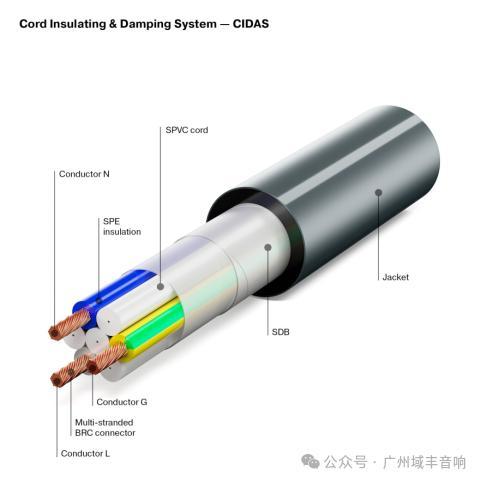 CIDAS技術全稱為Cord Insulating & Damping System線繩絕緣和阻尼系統)首次在一些特殊電纜中應用。相同直徑的BRC導線和PVC線在六邊形結構中最接近地線和圍繞中心的PVC線,具有最大封裝係數,確保最高的一致性,並具有精確的圓形輪廓,以實現完美的介電綁定和護套同心度。交織線由具有低介電導率和高機械衰減的SPVC製成。