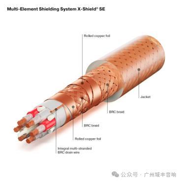 專利技術X-Shield®全稱為Multi-Element Shielding System,即多元屏蔽系統,能對我們生活中日益增加的EMI進行抗擾保護。該技術提供3層交互式三明治結構,具有兩層50 µ Copper foiled銅箔和緊密的BRC編織層。沿着內箔層延伸的一體式BRC排流線可將屏蔽阻抗保持在極低的水平,並在每個點提供均勻的屏蔽特性。