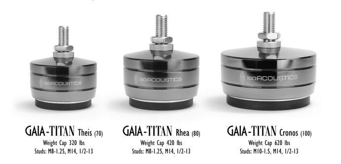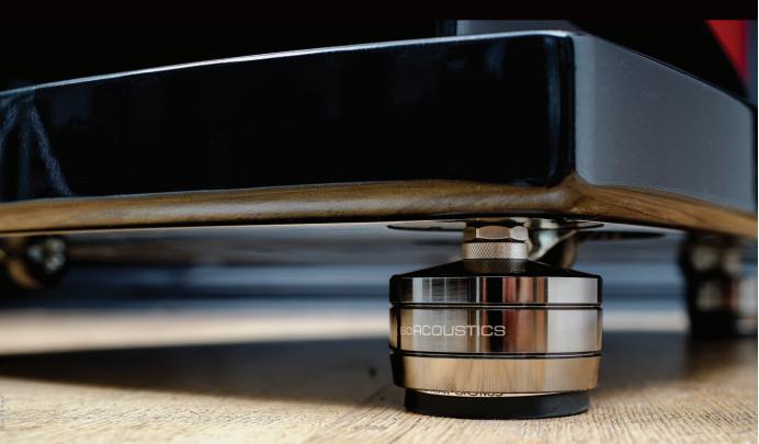 至于GAIA-TITAN系列,则采用和GAIA系列相同的专利避震设计,该系列面对更为“重型”的音箱而设。三个型号不同尺寸,对应不同重量的音箱使用。一套Theis 70承重上限为145kg,Rhea 80则是190kg,Cronos 100更可用于280kg的音箱。GAIA-TITAN的设计采用避振与隔离兼施,利用独家专利技术,控制水平振动的能量,而GAIA-TITAN顶部的金属部件,与音箱底座紧密贴合,音箱工作时产生的振动传导到GAIA-TITAN,可将振动能量引导衰减,不再影响音箱箱体,达到更为清晰且开放的音乐重现。