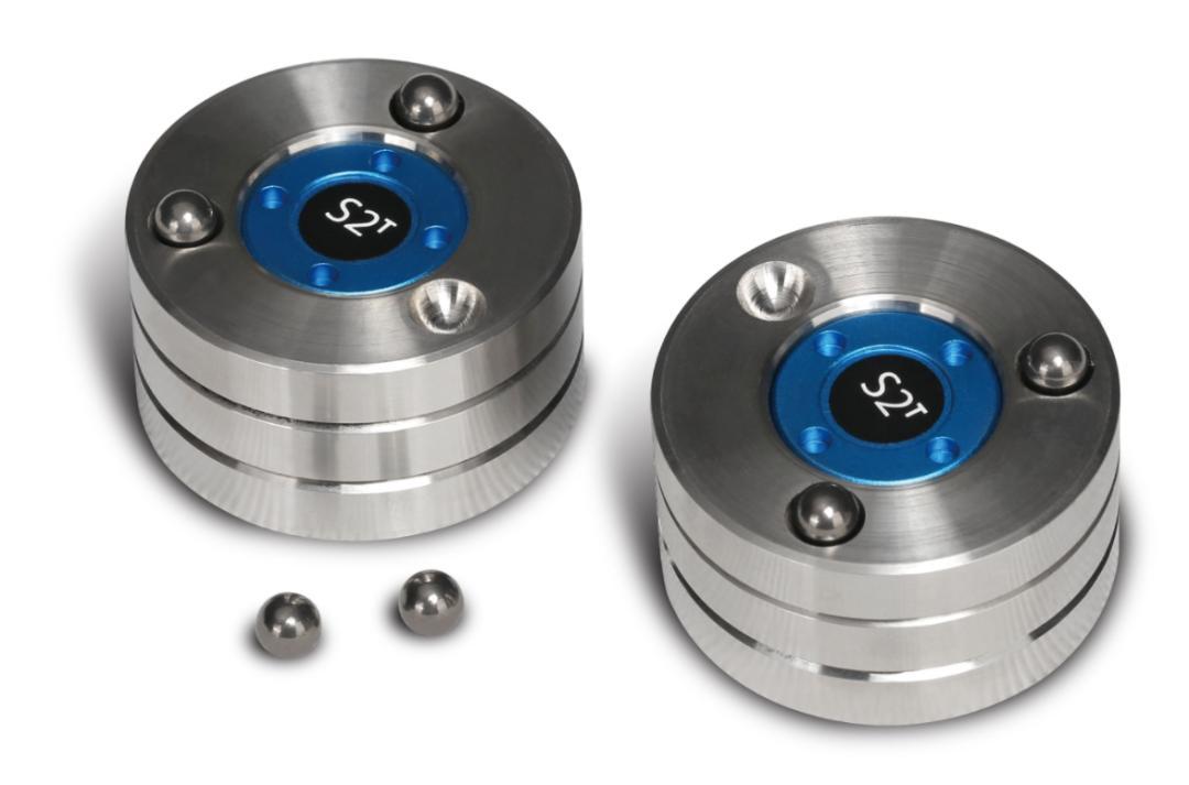 最为高级的Darkz T2 Supreme全部采用氮化铝钛制成,因为钛具有极佳的材料特性,可以实现完美的共振控制,同时每一块圆形金属块均经过精心的工艺制作,通过Hi-PIMS(High Power Impulse Magnetron Sputtering)对每块圆形金属块进行精心独家的处理,以产生最精细和最均匀的锆和钨层,随后再施加氮化铝钛层。当中6颗金属珠全为钛珠,Ansuz认为钛是保存自然声音的绝佳材料。如果配套使用自家产品,Ansuz建议用在Aavik C-580前级、PowerBox D-TC Supreme电处和Børresen Z5-Cryo Edition音箱。Darkz S2T脚座的圆形金属块材料则用到不锈钢,同样使用6颗钛珠,而如果配套使用自家产品,Ansuz建议用在Aavik P-280后级、Mainz8 D2排插和Børresen Z3-Cryo Edition音箱。