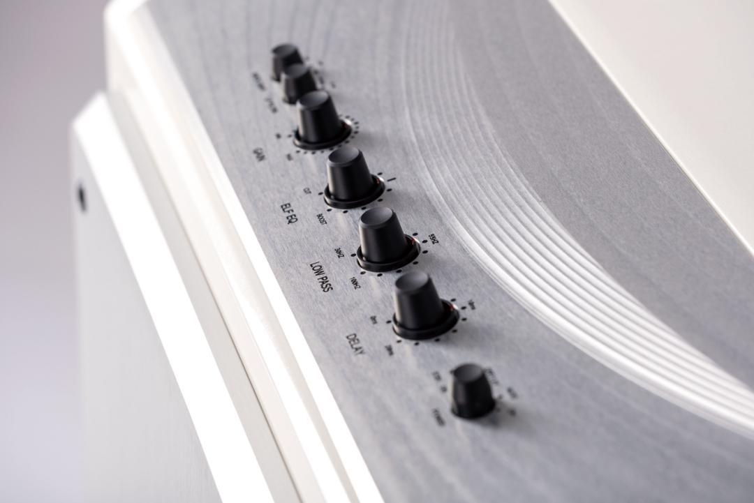 与LōKē不同的是,Submerge的面板上方设计了多只模拟参数调节旋钮,可以对增益、延迟(相位)、低通频率等参数进行调节。凭着这样的自由度,用家可以根据自己喜好、所搭配的器材、听音环境等,细细地调节超低频输出,达到最佳的听音效果,这可是很多超低音音箱所不具备的。