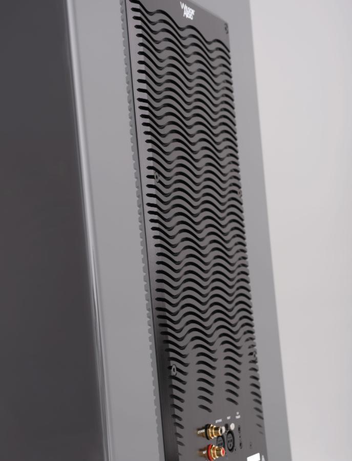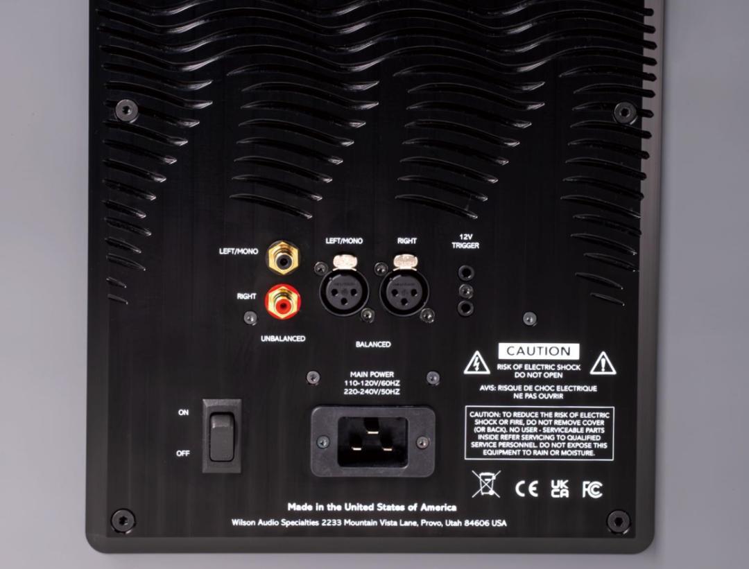 背板上,除了电源开关和电源插座之外,还可以看到一组非平衡RCA输入端子和一组全平衡XLR输入端子。背板上巨大且呈波浪状的铝合金散热器也非常独特,散热能力良好且非常美观,据厂家称其设计灵感是来自工厂周围的山脉起伏。