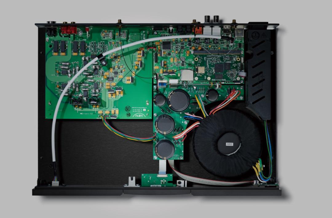 Nait XS 3内置了350W大功率环形变压器供电,而滤波电解电容则紧挨后级功率放大线路安装,以求功率管在需要强大电流输出的时候能够以最快速度供电,从而确保高速度响应。Nait XS 3的每个声部每一级线路的设计也都是左右声道完全镜面对称的,甚至接地点都非常考究,以取得更好的音场对称性和准确的结像定位感。另外,Nait XS 3还内置了高电流输出的纯A类耳机放大输出级,相当于为耳机爱好者节省了一台耳放及相关线材的开支。
