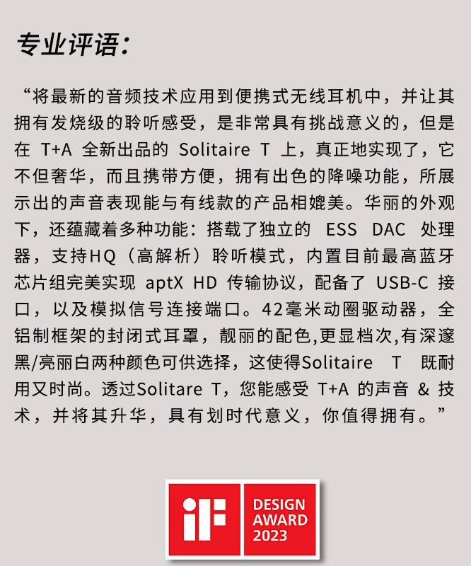 業界頭條 德國T+A 聽佳音 Solitaire T 無線降噪頭戴式HiFi耳機 榮獲:EISA 2023年最佳無線耳機大獎 作者 Fi-Play 在 2024年2月19日 更多在 業界頭條: Innuos音若思發佈全新旗艦數播NAZARE 2025年12月1日 YG Acoustics旗艦Ultimate Titan泰坦中國首發會 2025年11月29日 日本Soul Note發佈最新的第二代全線產品系列 2025年11月24日