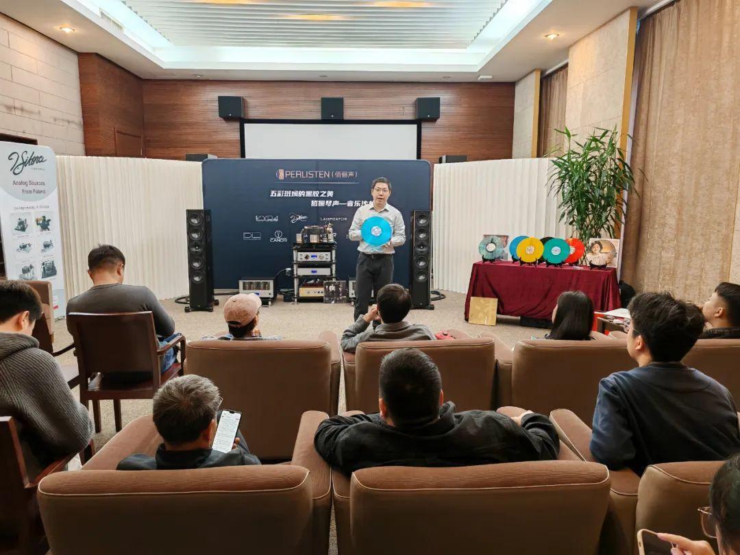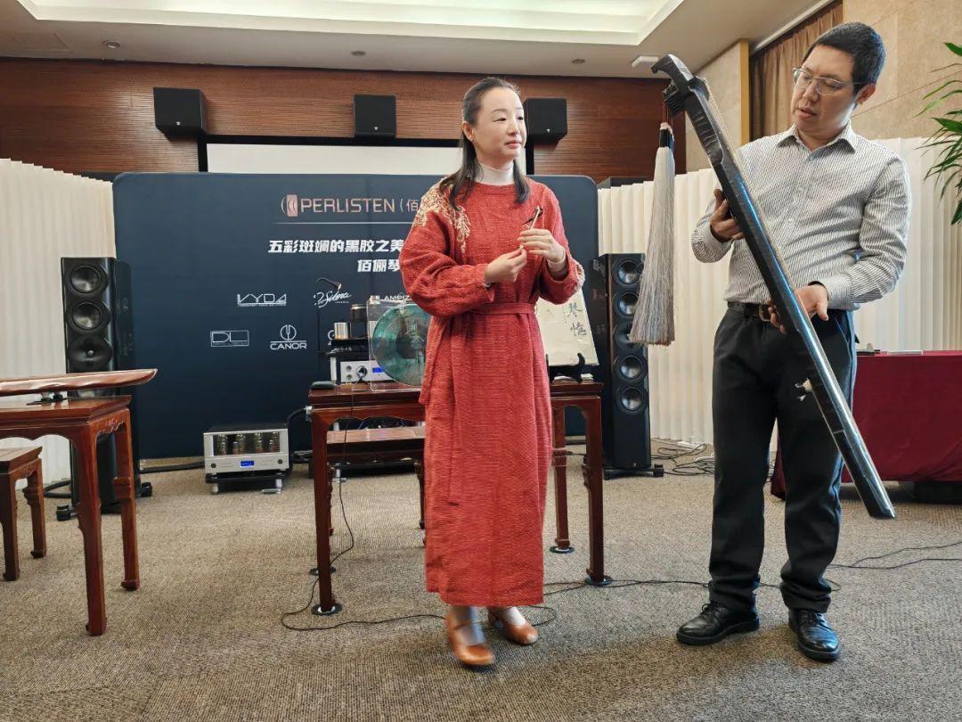 戴戈老师和李乐园老师一起和大家分享古琴的独特魅力以及唱片录制的幕后细节,鉴赏环节有李老师独奏也有双人古琴合奏,以及青玉翡翠LP黑胶播放。古琴演奏使用佰俪声Perlisten S7t LE限量版喇叭做现场扩音补音,李乐园老师评价经整套音响系统还原她的古琴录音是听过最动听的,达到了1+1大于3的听觉感受。