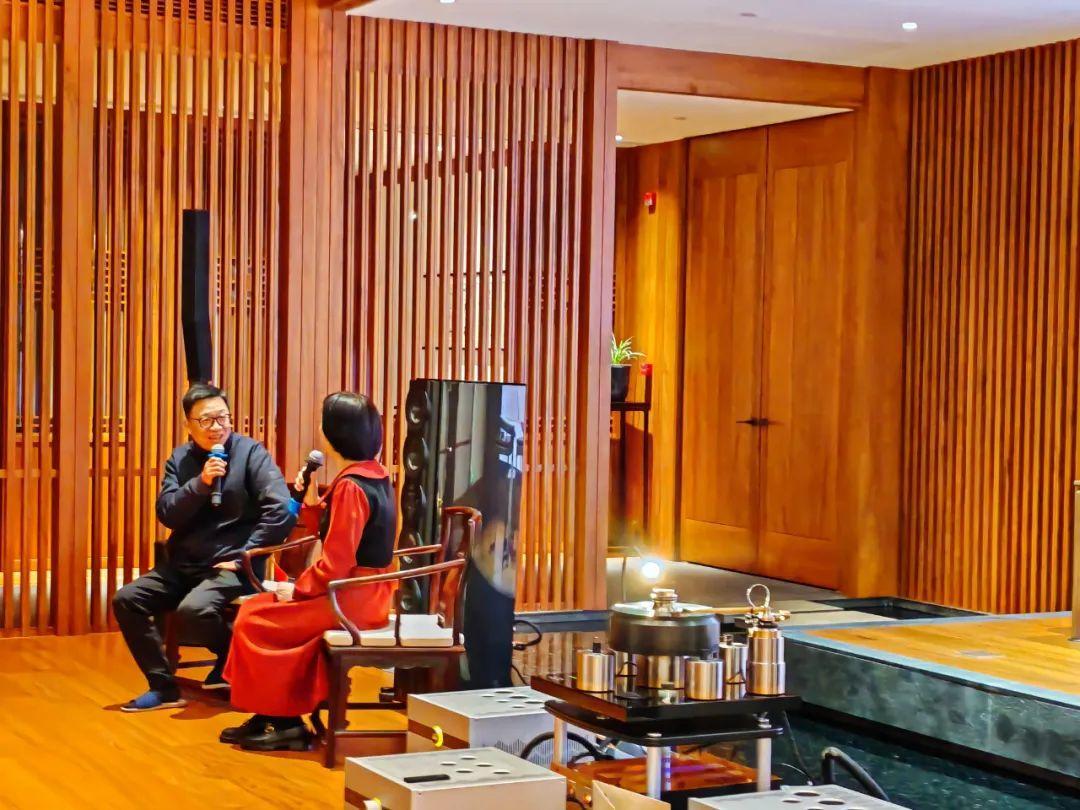 见面会在“三友斋”举办,是温州资深企业家孙总的私人会所。装修设计典雅大气,底蕴是偏中式木结构为主的架构,然而呈现的美学却既典雅又现代。会所中庭是活动主场地,声学效果之好令人咋舌,空间混响时间均匀,每一个角落声音覆盖都很均匀和清晰,就像是做了严谨的声学设计一样。据了解,整个装修设计孙总都亲力亲为规划统筹,实在令人钦佩。