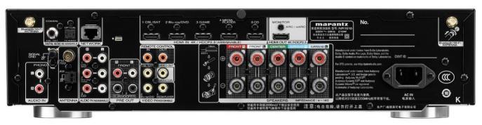 接口方面,除了前面板设计了6.5mm耳机接口外,马兰士NR1510还拥有各类接口。配备7个HDMI接口,其中包括6个HDMI输入和1个支持音频回传通道(eARC)的HDMI输出。并且所有HDMI输入接口均支持4K/60Hz全速率直通、4:4:4彩色分辨率以及HDR10和BT.2020。