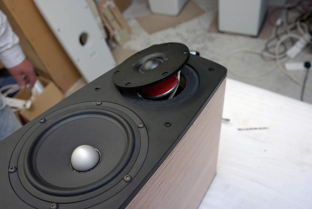 單元當然是音箱的重中之重,Expression系列的單元全部來自着名的挪威Seas品牌,以高品質、高精度、高可靠性聞名。這個系列全是二單元二分頻設計,高音單元是Seas Prestige 29TFF/W,單元盆架由玻璃填充工程塑料通過注塑成型製成,強度非常高,並且有橢圓形的聲波擴散器;球頂振膜則是採用浸漬織物製成,高強度液磁材料更可以改善音圈的散熱。中低音單元則是採用了Seas品牌的特殊塗層紙盆振膜,配合振膜中心的黑色防塵罩,可以有效提升動態控制能力。整個單元則是安裝在注塑鋅質盆架之上,寬大的橡膠懸邊則可以提升低頻量感。