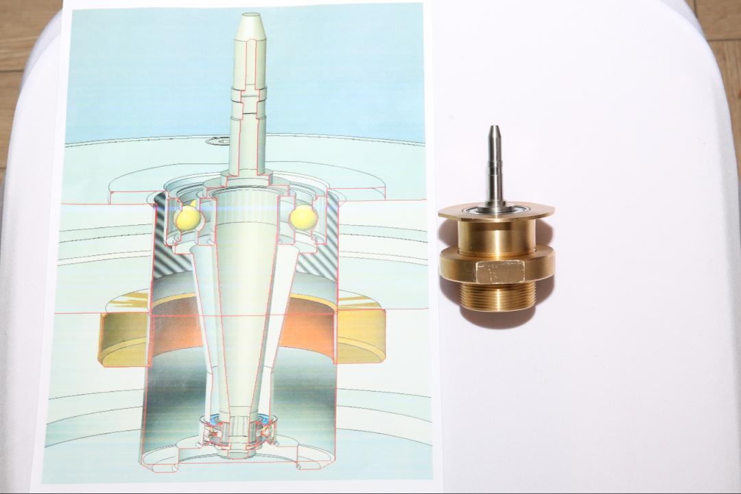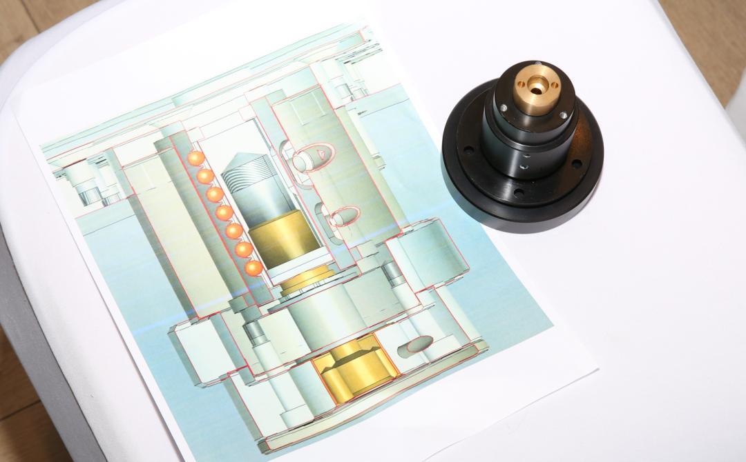 众所周知,气浮对减震拥有显著的成效,世界某些“气浮气吸”知名黑胶唱盘品牌专门对转盘进行“气浮”处理,并以外置气泵方式进行不间断的气压供应。而Volker深谙这种方案存在诸多问题和短板,例如外置气泵不但增加了黑胶唱盘的复杂性以及外围配件的累赘程度,气泵运作不可能不存在噪声以及各种脉冲负反馈,更重要的是气泵很容易坏,为此他坚持传统的轴承方案,并专门设计轴承结构,在轴承的顶部和底部加入双层滚珠锁定轴承,保证轴承无松动,从而解决转盘抖摆的发生。而顶部滚珠相比体积更大,同时担当垂直承托沉重金属转盘的重任。Volker充满信心地表示,这个轴承寿命极长、无需维修、无需机油、终身维护且可承受沉重运作转盘(50kg),对于长时间主要运动且严重影响声音素质的核心部件,该轴承的制作成本非常高。