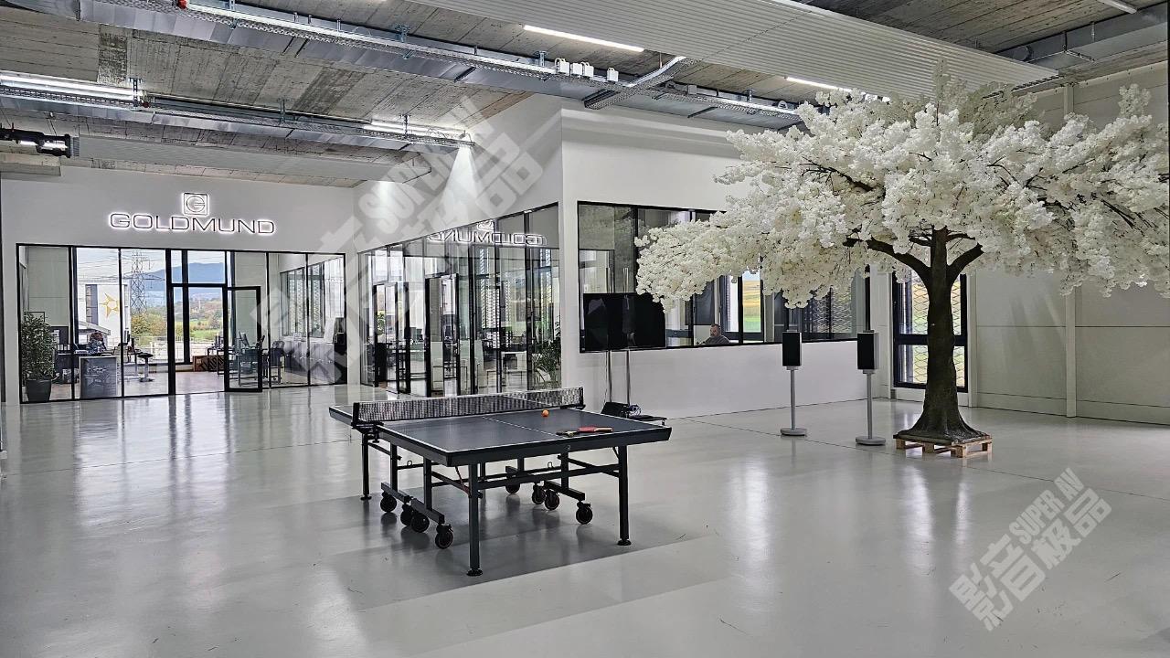 下車後,我們熟悉的老朋友Goldmund總裁Yohann Segala先生向筆者迎接,隨即我們來到了二樓接待大廳。2樓的環境非常寬敞,整齊乾淨,井井有條,空間布局整齊劃一,活動空間非常大。映入眼帘的是接待大廳中的乒乓球桌和其後方的裝飾假樹,據Yohann介紹,寬敞的活動空間可以給員工和來賓更好的身心放鬆,休息之餘也可以打一下乒乓球。當筆者靠近大廳其中一個窗戶時,建築外美麗的景色把筆者吸引住了。在不遠處可以看到原處的山脈、瑞士的草原和整齊的田野等美景,讓人在工作之餘心曠神怡。