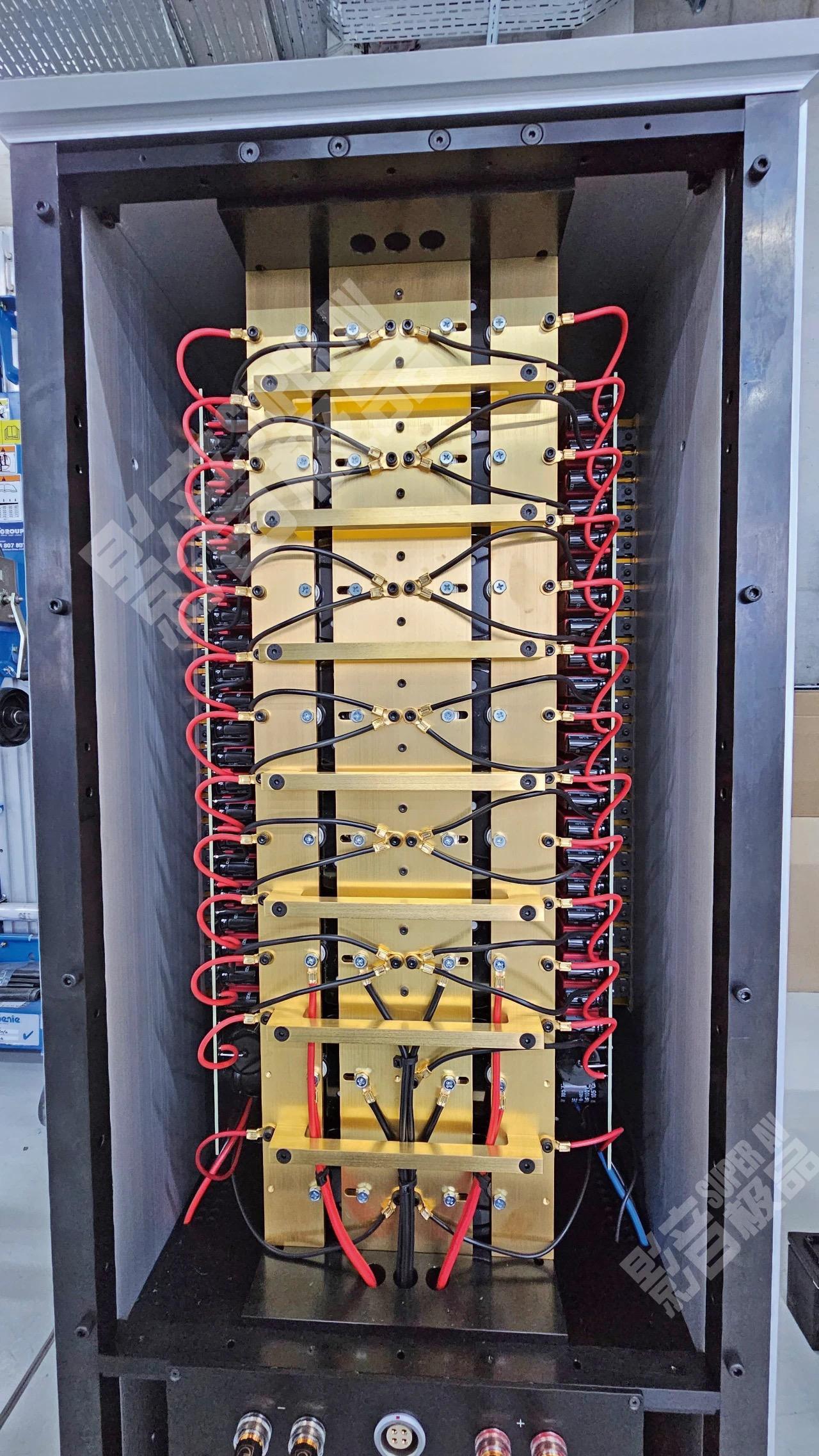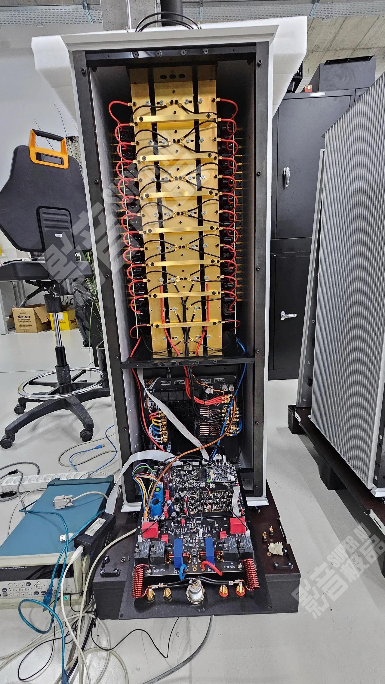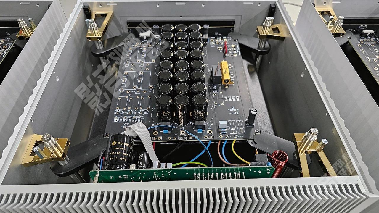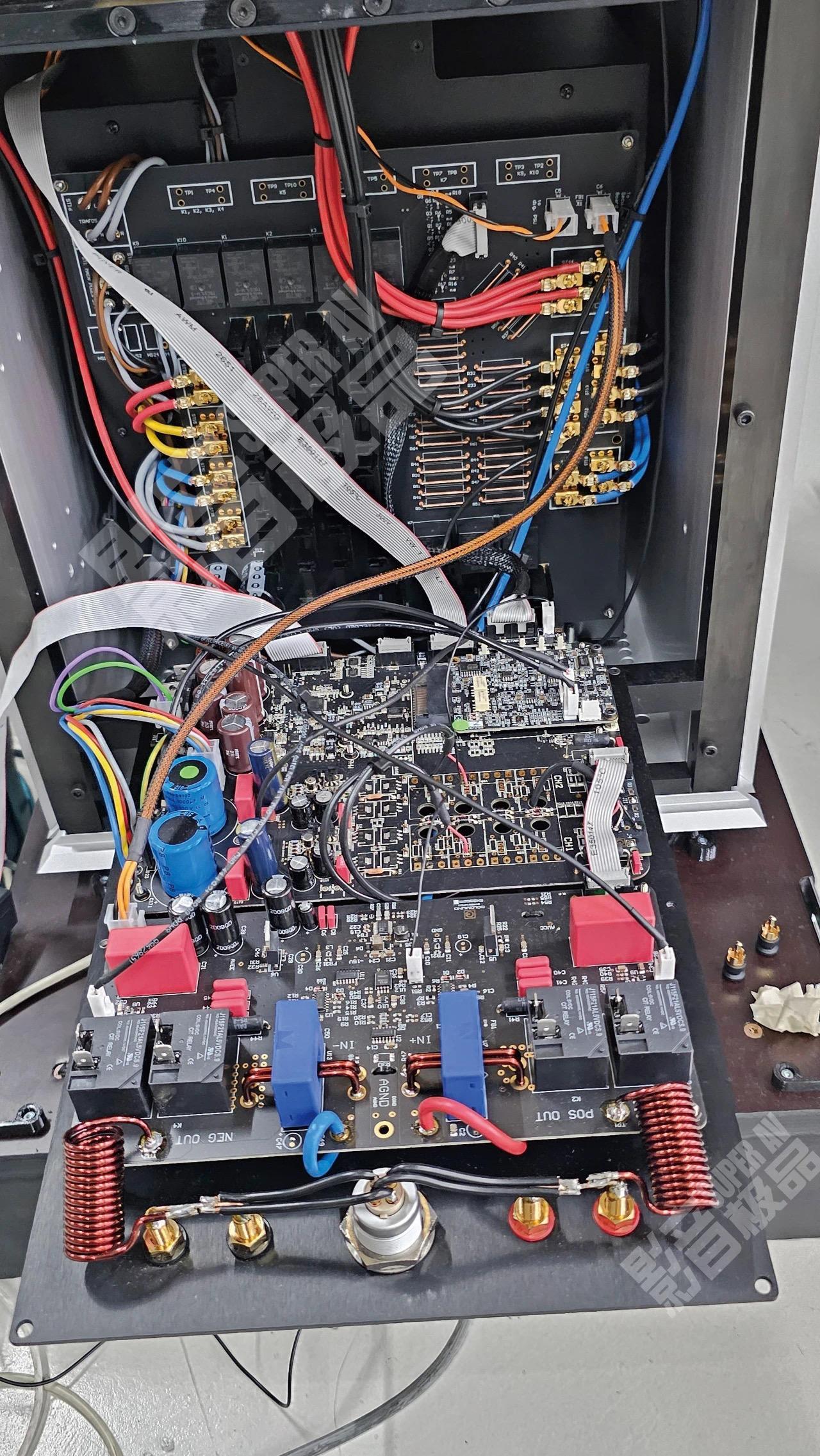 輸入級模擬和數字電路板,輸出級線路,後方為變壓器連接面板,提供整流穩壓作用