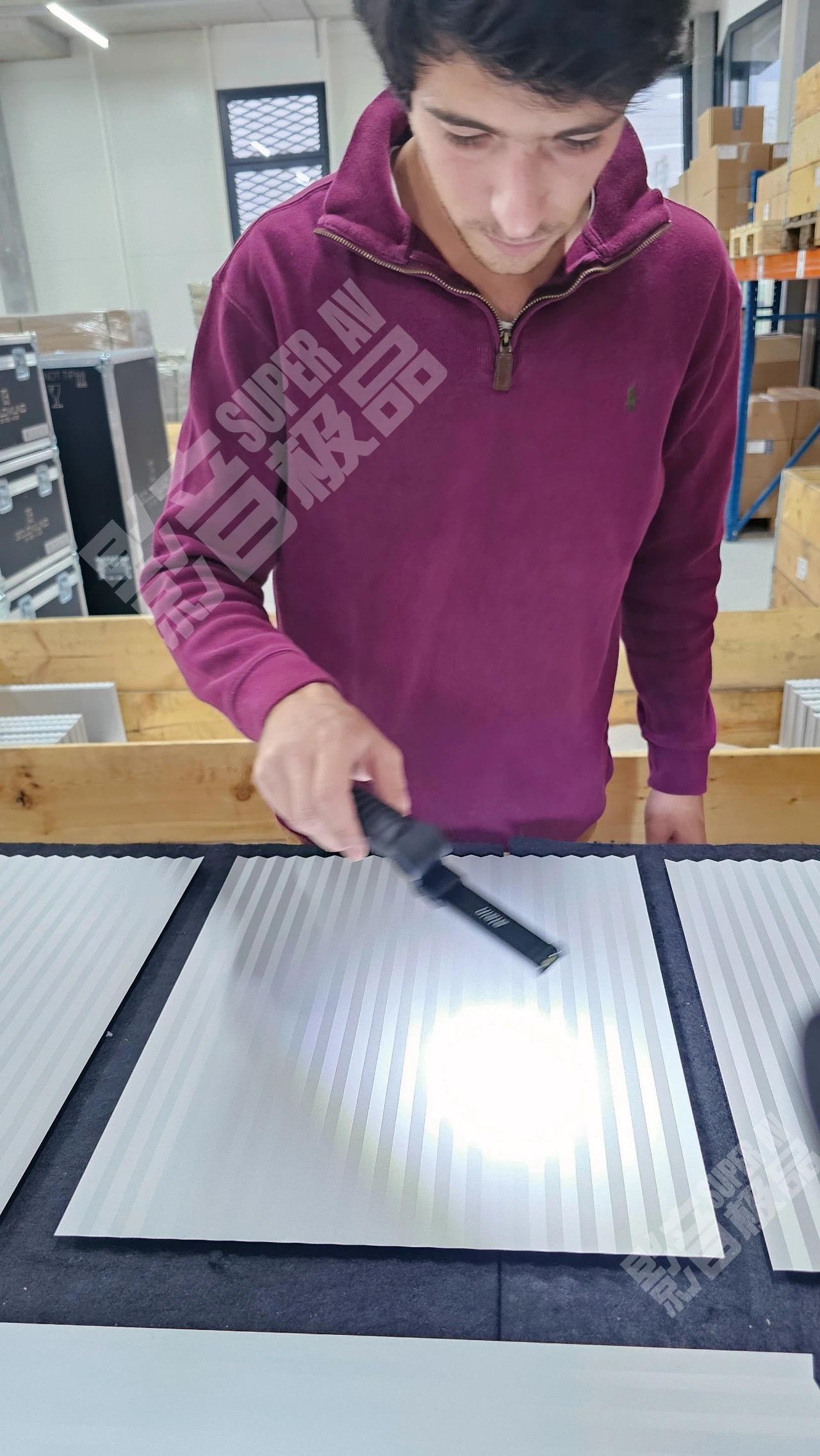 金屬面板的質檢人員會仔細檢查面板的瑕疵情況,會把不合格有缺點的進行標示,並篩選好的面板供產線