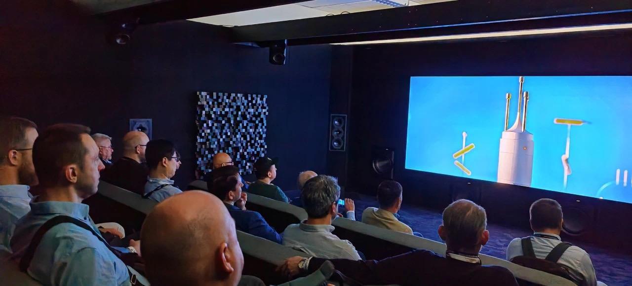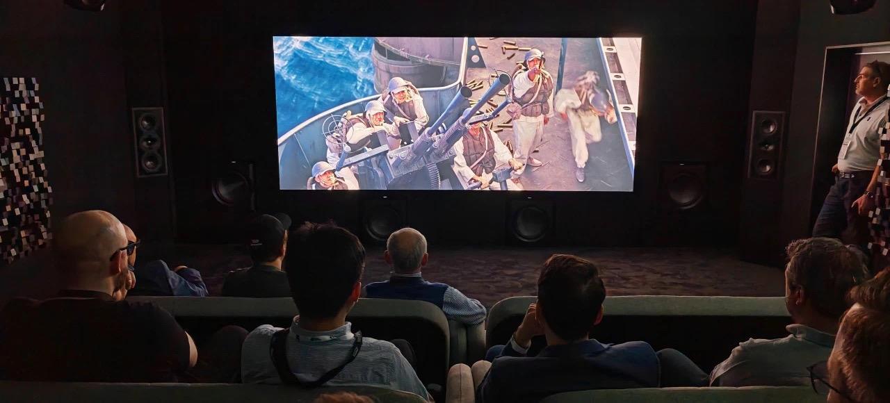 影院展區由Perlisten和Trinnov兩大音頻行業巨頭共同打造,這是迄今為止慕尼黑音響展最先進、性能最高的沉浸式家庭影院演示。11.8.6全景聲系統使用全套的Perlisten THX Dominus最高認證揚聲器和超低音,這是Trinnov 獨門秘技「圓柱波形(Cylindrical WaveForming)」技術的全球首發。雖然仍然是WaveForming技術高端系統演示,但全新的「圓柱波形」技術所需的低音炮數量僅為CEDIA Expo上展示的系統的三分之一,而且可以直接落地安裝,新技術使用更少的低音炮和具有更輕鬆的位置規劃,這意味着享受純凈沒有邊界反射污染的低頻變得更加容易。