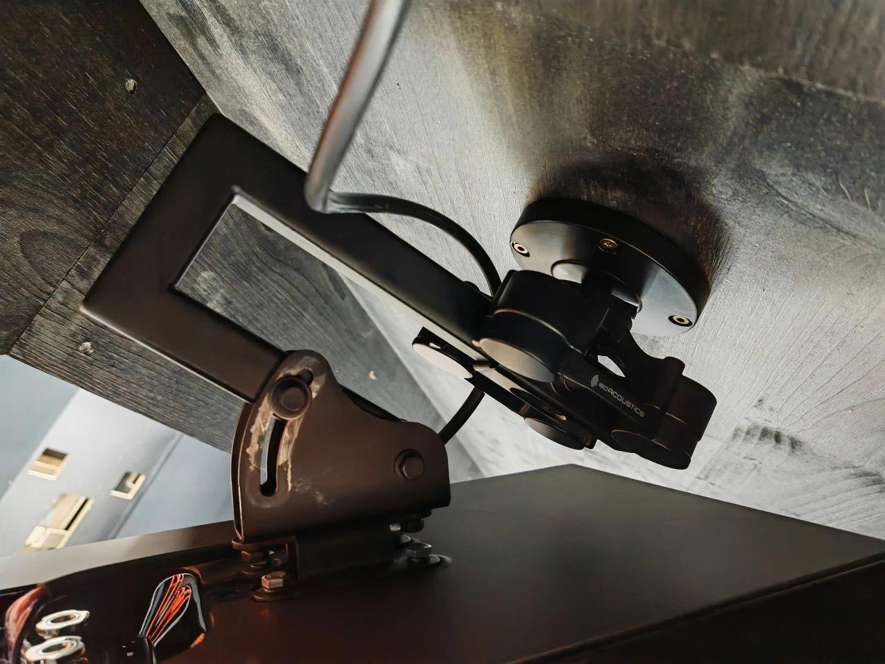 什麼叫武裝到牙齒!本次展會Perlisten天空聲道安裝喇叭的支架都是由加拿大專業避震品牌ISOAcoustics定製,想必價格一定不菲,但是作為Perlisten這個全球最好揚聲器品牌之一的安裝支架好像也理所當然。v120 Mount並非普通壁裝音箱支架,採用了ISOAcoustics獲獎的避震隔離技術,是一款錄音室監聽系統天花或者牆壁支架,可以隔離將揚聲器系統從牆壁或者天花板結構振動中隔離出來。其實在ISOAcoustics自己的展廳靜態展示C位也特意有擺放使用ISOAcoustics避震釘的Perlisten s7tLE限量版揚聲器。