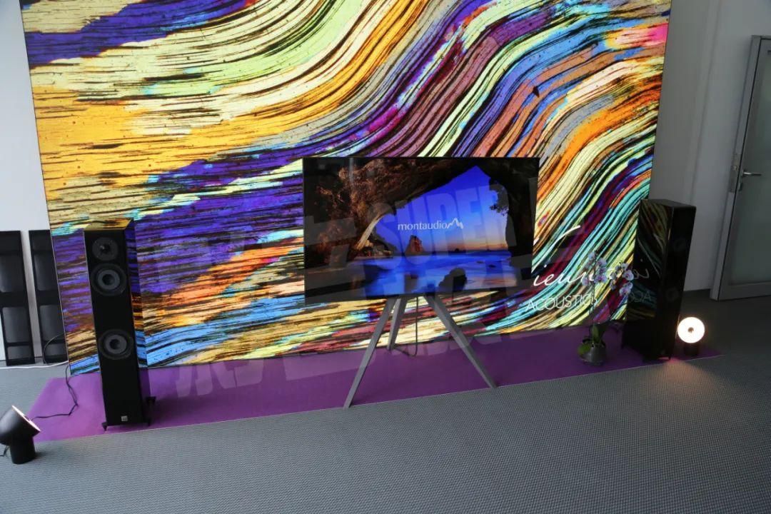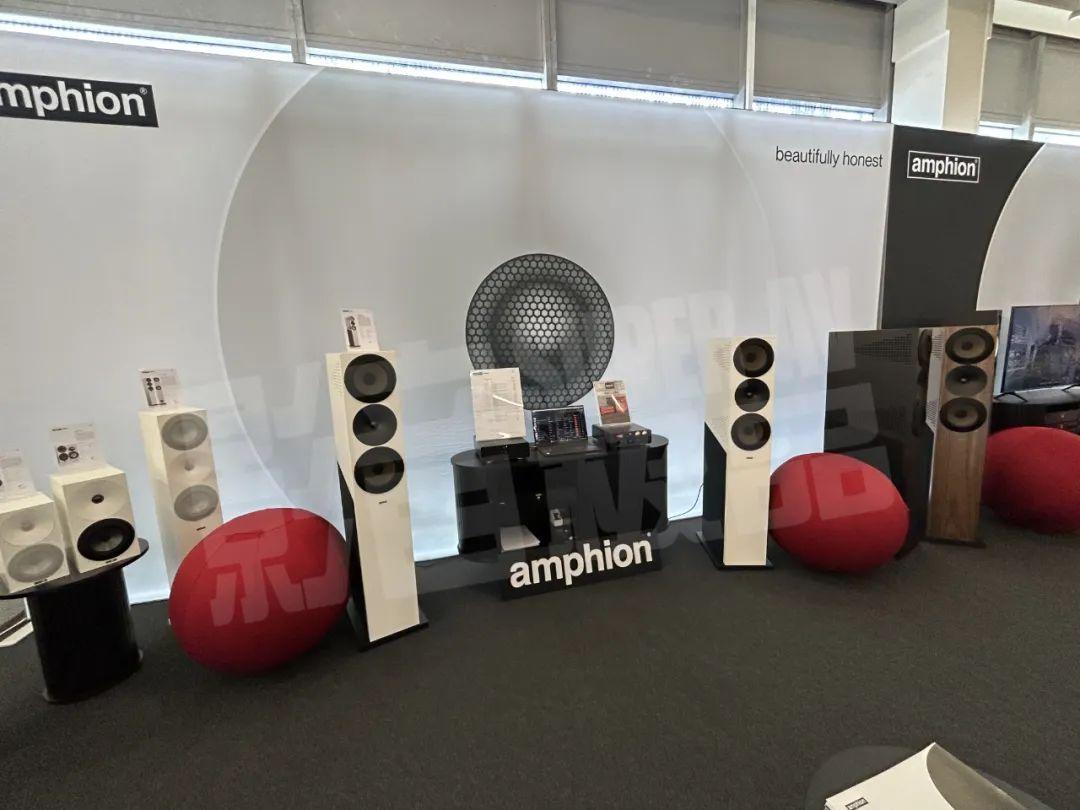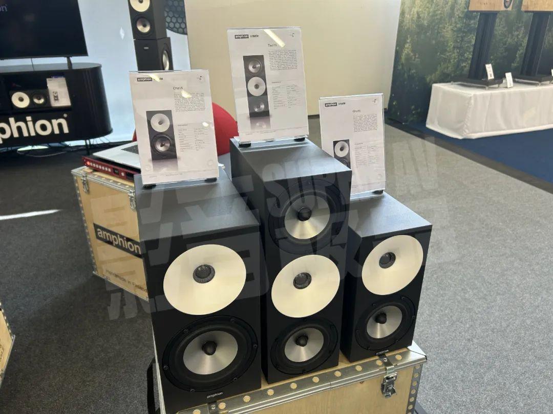 芬兰之声展位展示了家用产品和专业监听产品,家用产品以白色和木色为特征,而专业产品则为消光黑色。静态展示的产品包括Helium510、Argon3LS、Argon系列等,而正在演示的则为旗舰Krypton3X座地式音箱。