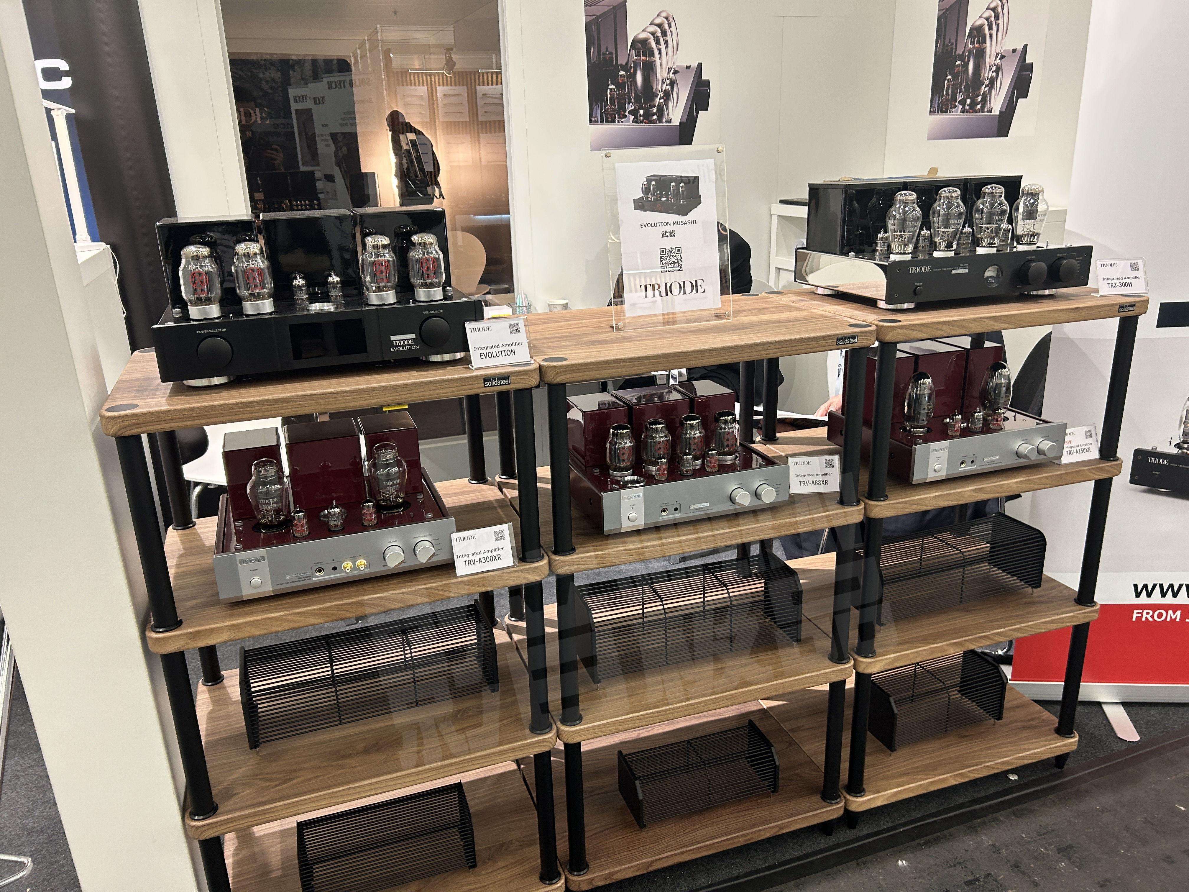 Triode正在演示的器材包括TRX-EQ7唱放、TRV-CD6SE CD播放器、全新的Evolution前级、Evolution 300 30周年电子管合并机(西电300B)