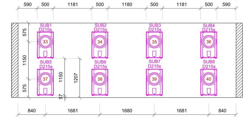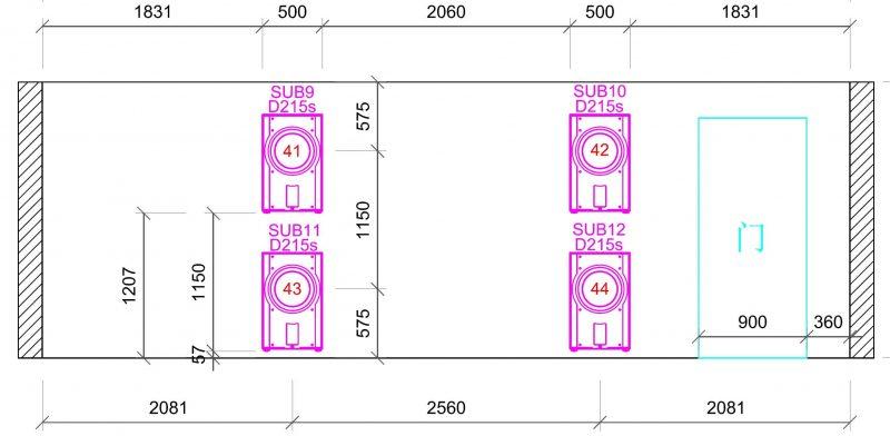 北京优山美地家庭影院项目设计的WaveForming系统是8-4双低音阵列,通道分配从前墙超低音阵列开始从左到右依次定义超低音通道,然后是后墙。