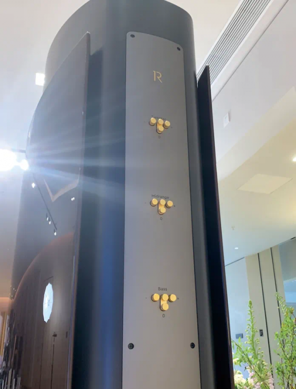 整个音箱外观流露出来的旗舰气息有足够的说服力,超过160cm的高度、单只高达155kg的重量。这对旗舰音箱以其高品质的材料和精湛的工艺给人留下了深刻的印象,尽管体积庞大,但经过精心手工打造的REFERENCE GS EDITION座地式音箱设计优雅,做工精致,表面光洁度都令人过目不忘。REFERENCE GS EDITION的设计师把木材、金属和漆面等元素和谐地结合在一起,创造出一件令人无法抗拒的艺术品。虽未开声,仅在美学上欣赏就已达到极高的质素。
