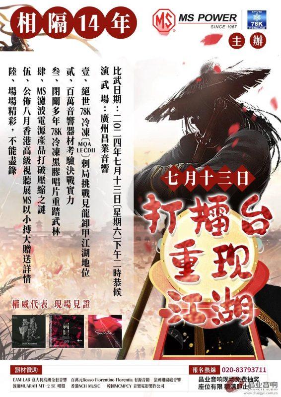 七月十三日下午14時30分,MS HD POWER「萬成」攜手昌業音響于海印廣場四樓昌業音響陳列室舉辦「打擂台重現江湖」MS HD POWER盛夏「冷凍」/唱片演示會,萬眾期待,盛況空前!