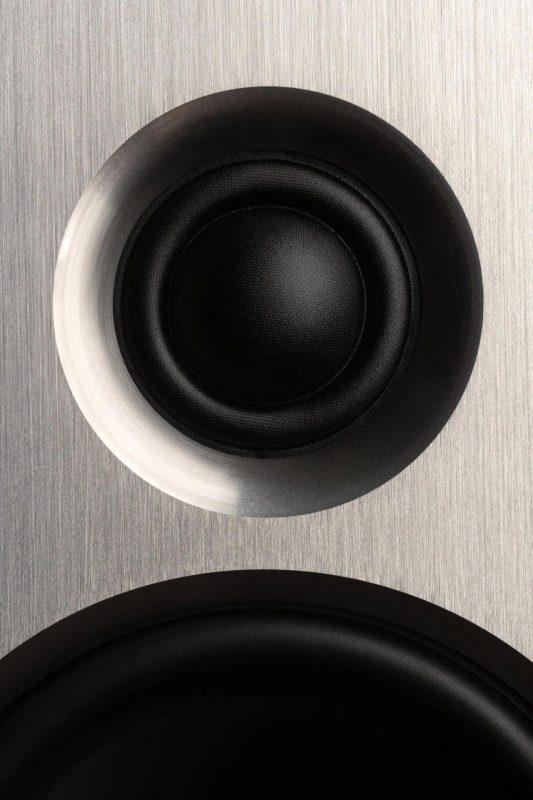 作为两音路书架式音箱,Signature Edelstein配备一个30mm双复合材料丝膜球顶高音和一个110mm中低音单元。首先看其高音,具有超宽的折环,优化20 kHz以上的扩散性能。前文提到的实心铝合金前面板经过全新计算的“球形波导”,令高音可实现最佳的扩散特性,机械与铝合⾦⾯板的机械耦合,将⾃然振动降⾄最低。这个高音单元具有⾼性能的钕磁铁系统,获得⼤动态和⾼分辨率。