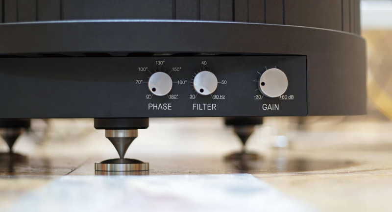 驱动单元的D类数字功放模块位于IGx发烧级低音炮发烧级低音炮的底座上,其功率输出为500W。而与其他低音炮截然相反的是,这些低音炮设计需要非常高的功率来驱动振膜,而IGx发烧级低音炮则不必克服此问题。因为D类放大器可以实现快速和胜于传统放大器的功率,因此不但体积小巧、效率高、低耗能、高稳定外,同时还具备极低的失真表现。而IGx发烧级低音炮底部的控制板则是与CASS Audio合作开发的,CAAS Audio是GMT联盟的合作伙伴之一,是所有控制系统开发的核心,针对IGx发烧级低音炮控制包括0-180°相位、30-90Hz滤波设置和-30dB至60dB增益。