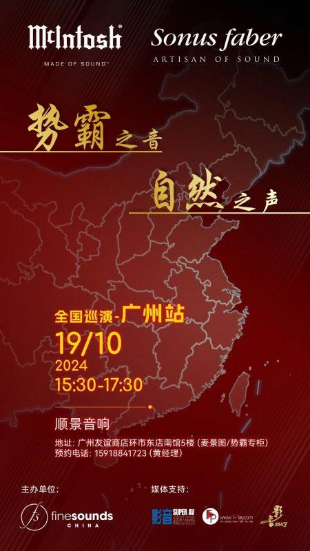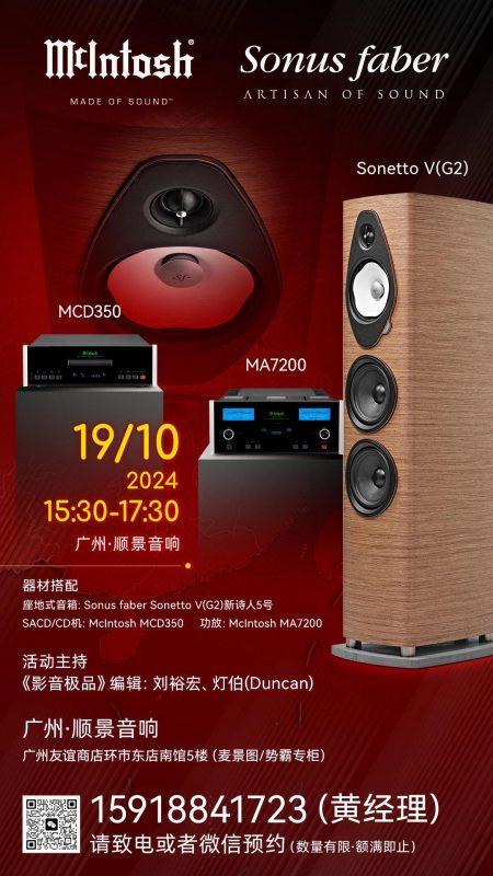 由娓颂中国主办的Sonus faber势霸全国巡演已经在多个城市成功举办,进入10月,马上开始新一站的演示:广州!本次演示会时间为10月19日(周六)15:30-17:30,对此有兴趣的烧友可以联系广州顺景音响报名预约(预约电话:159 1884 1723),场地有限,欲报从速。下面是演示会的具体信息和器材搭配。
