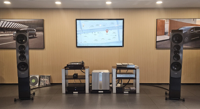 作為DYNAUDIO的香港及澳門地區代理,新漢建業也出席本次演示活動,盡遣旗下代理的多個音響品牌,組成兩套音響系統作為現場的動態和靜態演示。動態演示系統方面,音源採用Thorens TD 1600 w/TP 160黑膠唱盤和Burmester 089 CD播放器輪番演繹,搭配全套Burmester功放,包括088前級、909mk5立體聲後級,音響架和墊板同樣是Burmester出品。開聲演示的音箱則為DYNAUDIO Confidence 60座地式音箱,這個系統搭配全套Inakustik發燒線材,令音質表現更為精進。