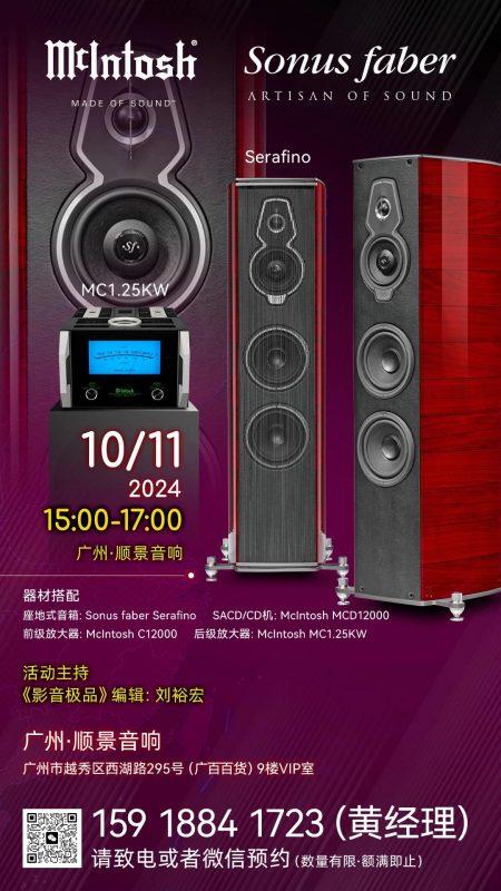 由娓颂中国主办的Sonus faber势霸全国巡演已经在多个城市成功举办,上月,我们已进行广州站(顺景音响)的演出,由于反响热烈,为回馈广州及附近地区发烧友的热情,本月,我们将在顺景音响再进行广州站的第二次演示。相信很多朋友对上一次的Sonetto V(G2)新诗人5号的体验依然意犹未尽,而本次将回归名琴系列,以Homage Tradition传承系列的中名琴Serafino为对象,让大家感受品牌名琴系列的经典声音魅力。本次演示会时间为11月10日(周日)15:00-17:00,对此有兴趣的烧友可以联系广州顺景音响免费报名预约(预约电话:159 1884 1723),场地有限,欲报从速。下面是演示会的具体信息和器材搭配。