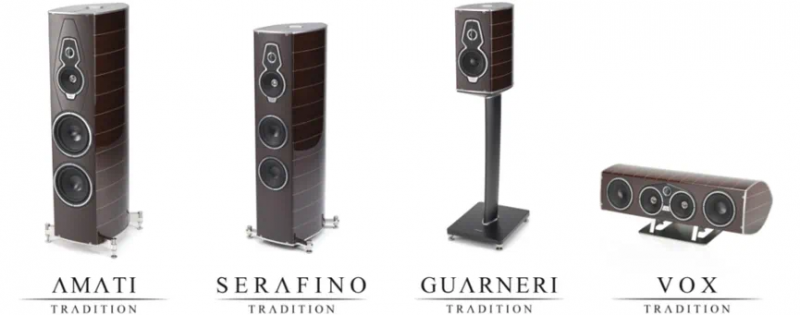 Homage Tradition系列除了Amati与Serafino以外还有一款书架音箱Guarneri与中置音箱Vox。书架音箱Guarneri采取2音路设计,1个28mm的Arrow Point DAD高音单元,150mm的钕磁铁中低音单元,与Amati和Serafino使用的中高音单元应该是非常接近,整体设计极为相似,如果是高阶用家也可以选择Homage Tradition系列组成一套十分高级的剧院系统。