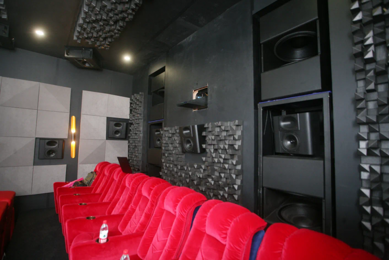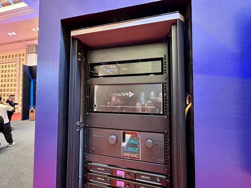 米乐影音搭建的示范系统有两个配置,分别是14.8.9(共31通道)和5.4(共9通道)。前者是面向独立视听室的配置,前方和后方分别有4只超低音音箱组成超低音音箱阵列。其中,后方的超低音音箱阵列作为声学抵消。前方的超低音音箱阵列是同时负责播放片源中的低音信息以及声学抵消作用。在硬件方面,这个14.8.9配置的影院采用全套瑞典Procella Audio的扬声器和功放。8只超低音音箱是旗舰型号V21,它采用双21英寸直径的低音单元,可以发出非常深沉宽松的低音。主音箱更展示了新款旗舰P880,也是国内首次亮相。天空声道和环绕声道分别采用P8iCW和P8。由Trinnov Audio Altitude 32环绕声处理器/前级对环绕声音响进行全面优化。在影像部分,Barco SP4K-27BHC投影机,搭配C-ATFS-220-235投影幕,播放机为R_volution PlayerOne 8K,再经过madVR Envy-Extreme视频处理器作优化。