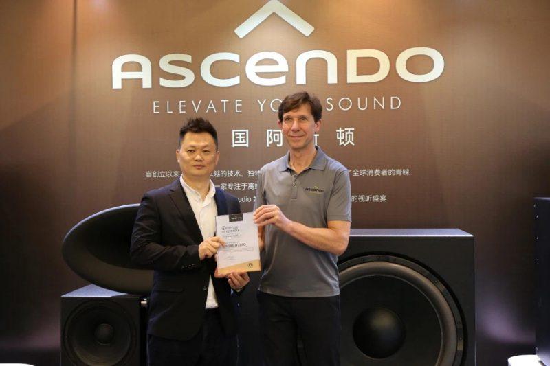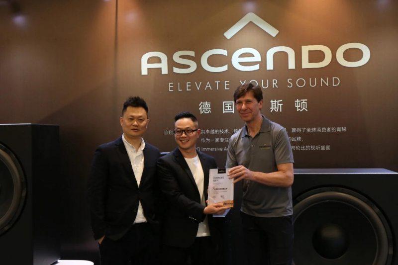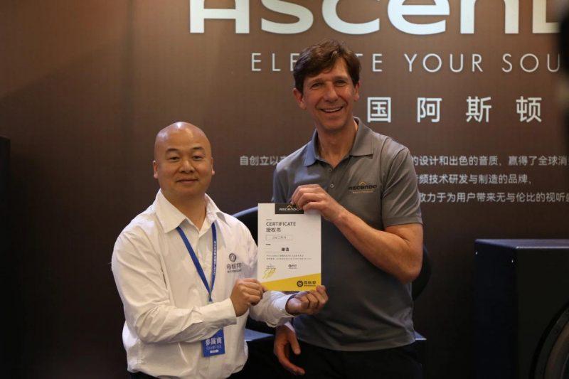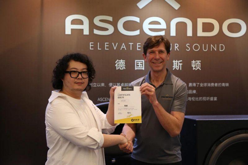 發佈會最後,在Geoffrey Heinzel先生的見證下,音聯邦向廣東首樂科技有限公司和重慶者來商貿有限公司頒發了Ascendo(德國阿斯頓)經銷商證書,並向兩位技術工程師授予了技術總監和調試工程師的證書。