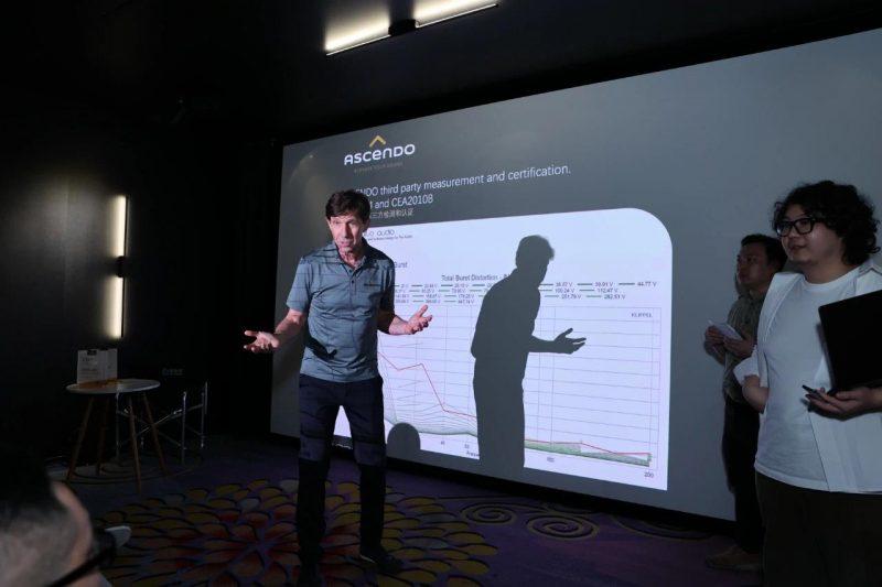 Ascendo品牌方代表Geoffrey Heinzel先生展示了若干實際測試的數據。此外,Geoffrey Heinzel先生特別指出,Ascendo的家庭影院音響產品具備高度的可靠性,能夠從容應對各種挑戰,證明了自己的實力