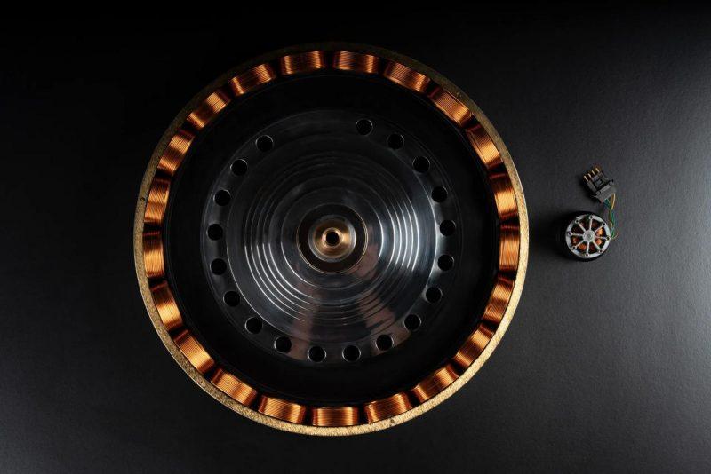 转盘本身不与周围有直接的接触,同时经过有限元分析使用两颗巨大的N30H NdFeB磁体将巨大的转盘悬浮于电机之上,使其与轴承的接触减到最小。这一彻底的无接触直驱设计使得GMT ONE拥有无与伦比的稳定性和零震动特性。OMEGA DRIVE可以说是唱盘驱动的尽头形式。